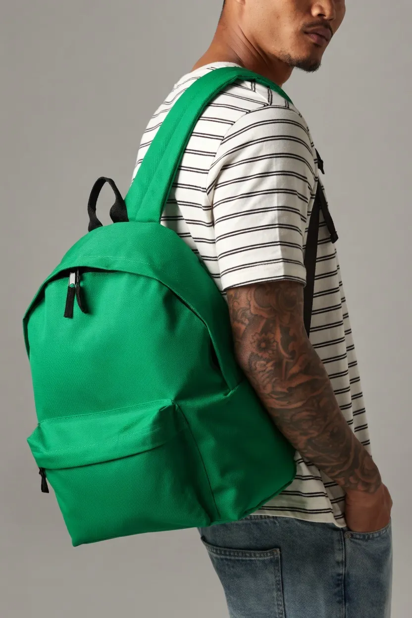 Polyester 600D, étiquette détachable tearaway, dos matelassé, bandoulières matelassées ajustables, poignée de transport, poche frontale zippée.