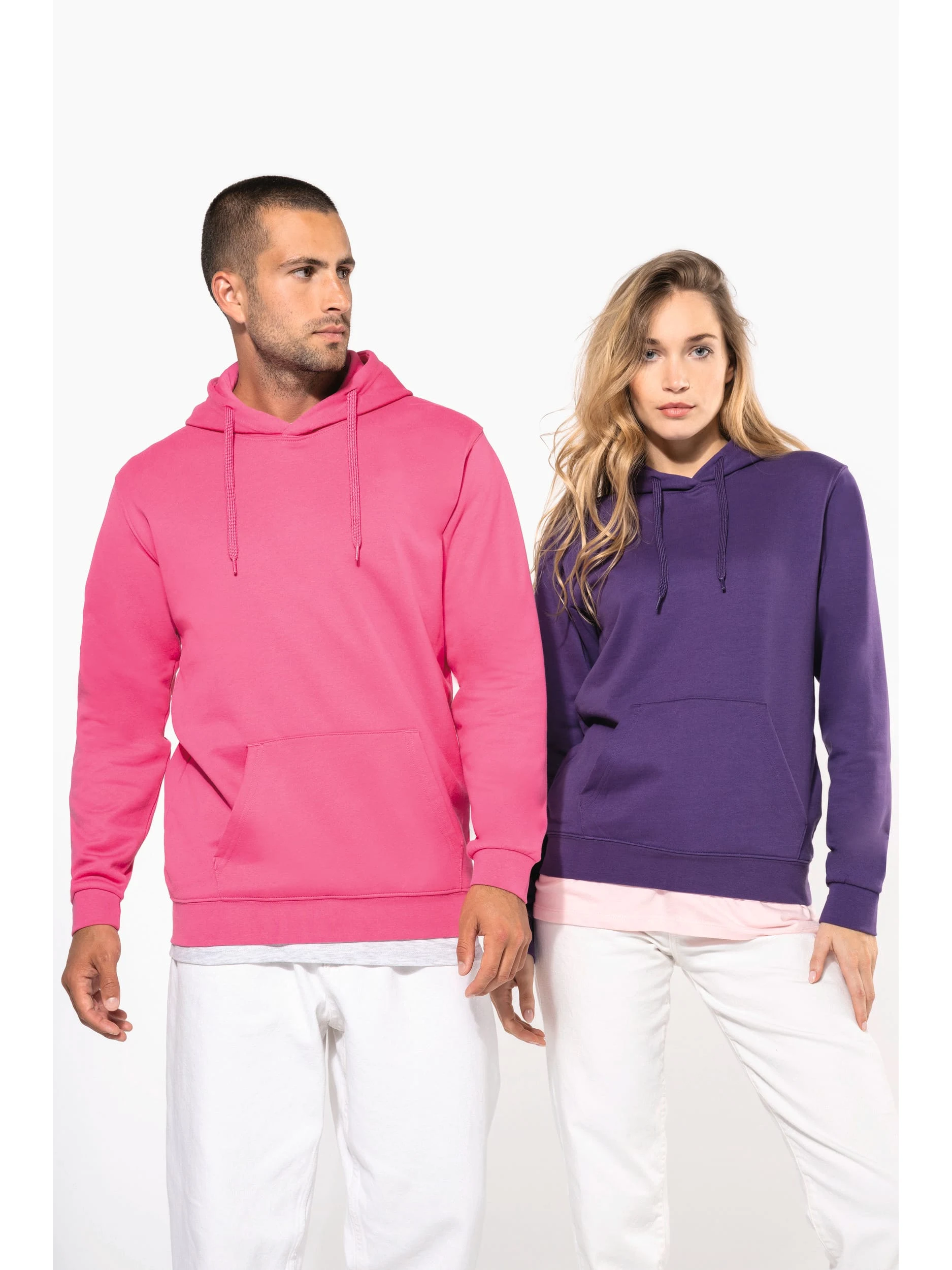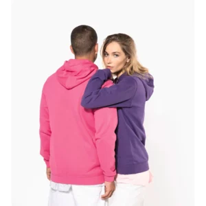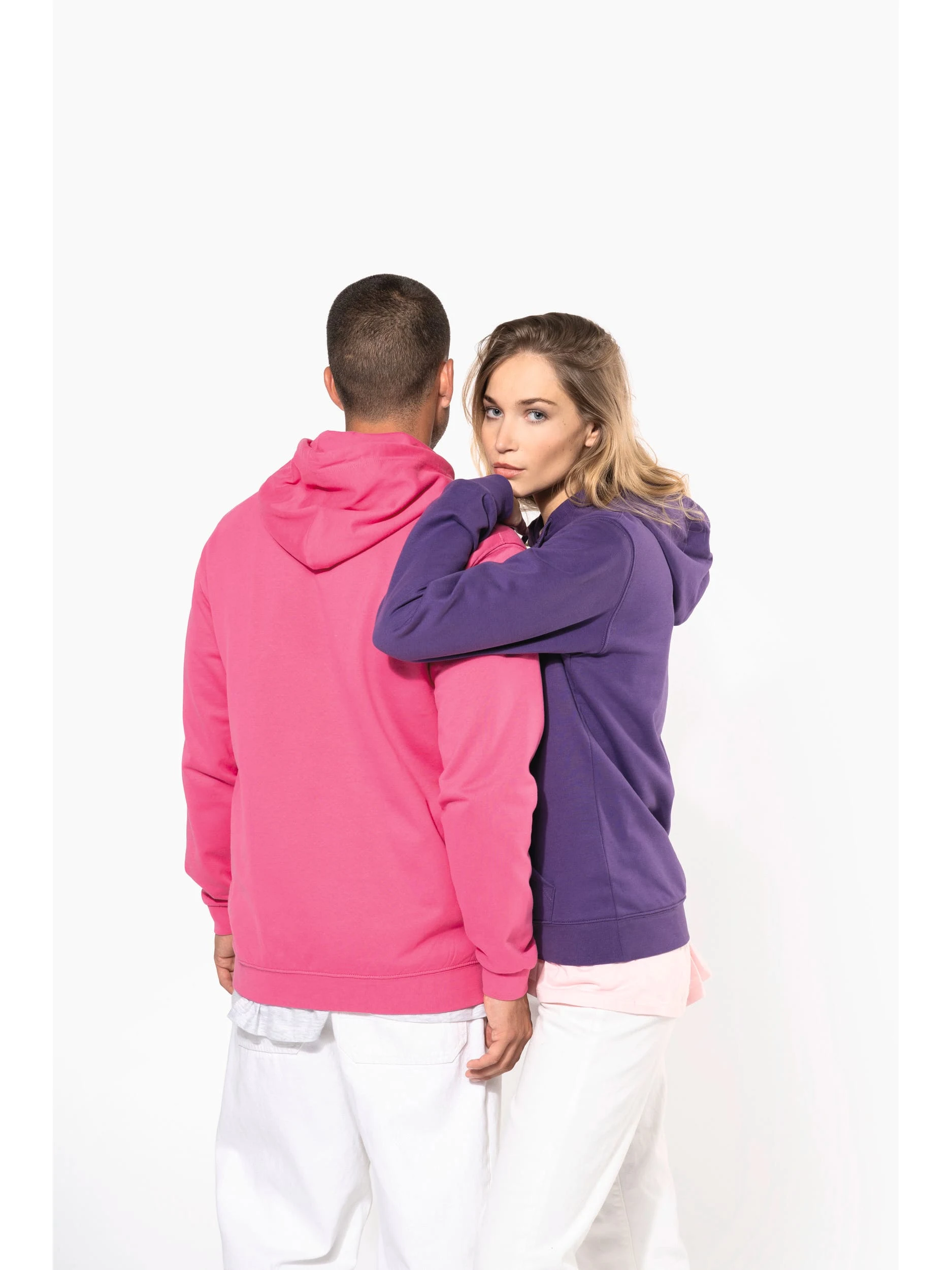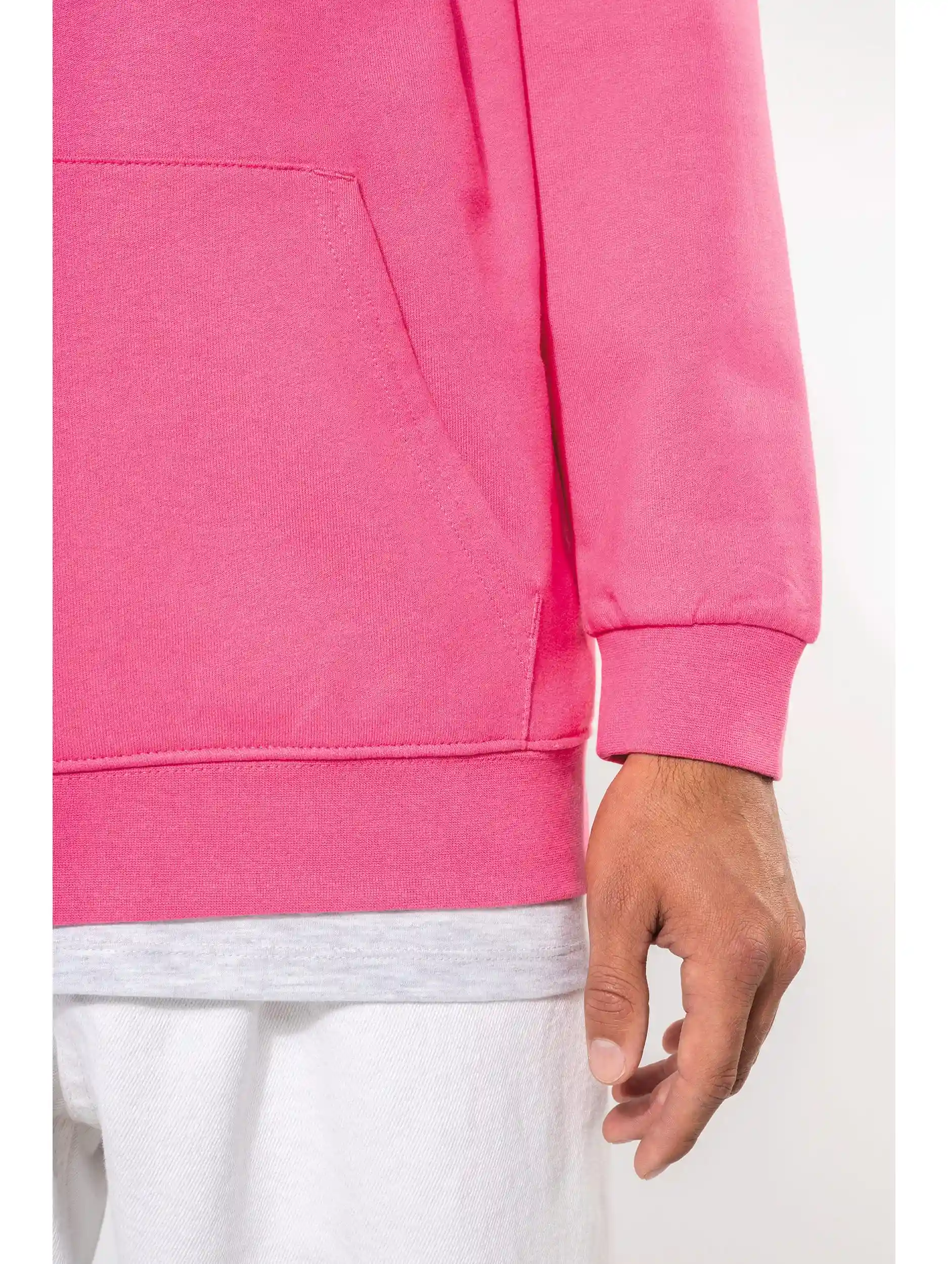 80% coton / 20% polyester (Olive camouflage et Grey camouflage 70% coton / 30% polyester). Coton peigné. Molleton gratté. Manches montées. Capuche doublée avec cordon de serrage ton sur ton. Poches Kangourou. Finition bord-côte bas de manches et de vêtement.