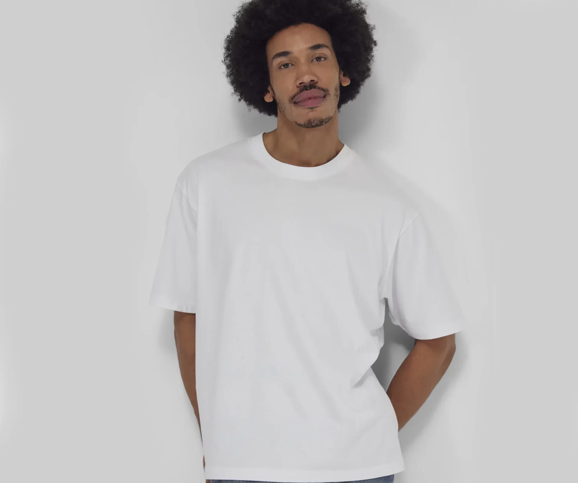 Modèle unisexe avec coutures latérales. Col en bord côte. Style streetwear. Épaules tombantes. Coupe oversize.