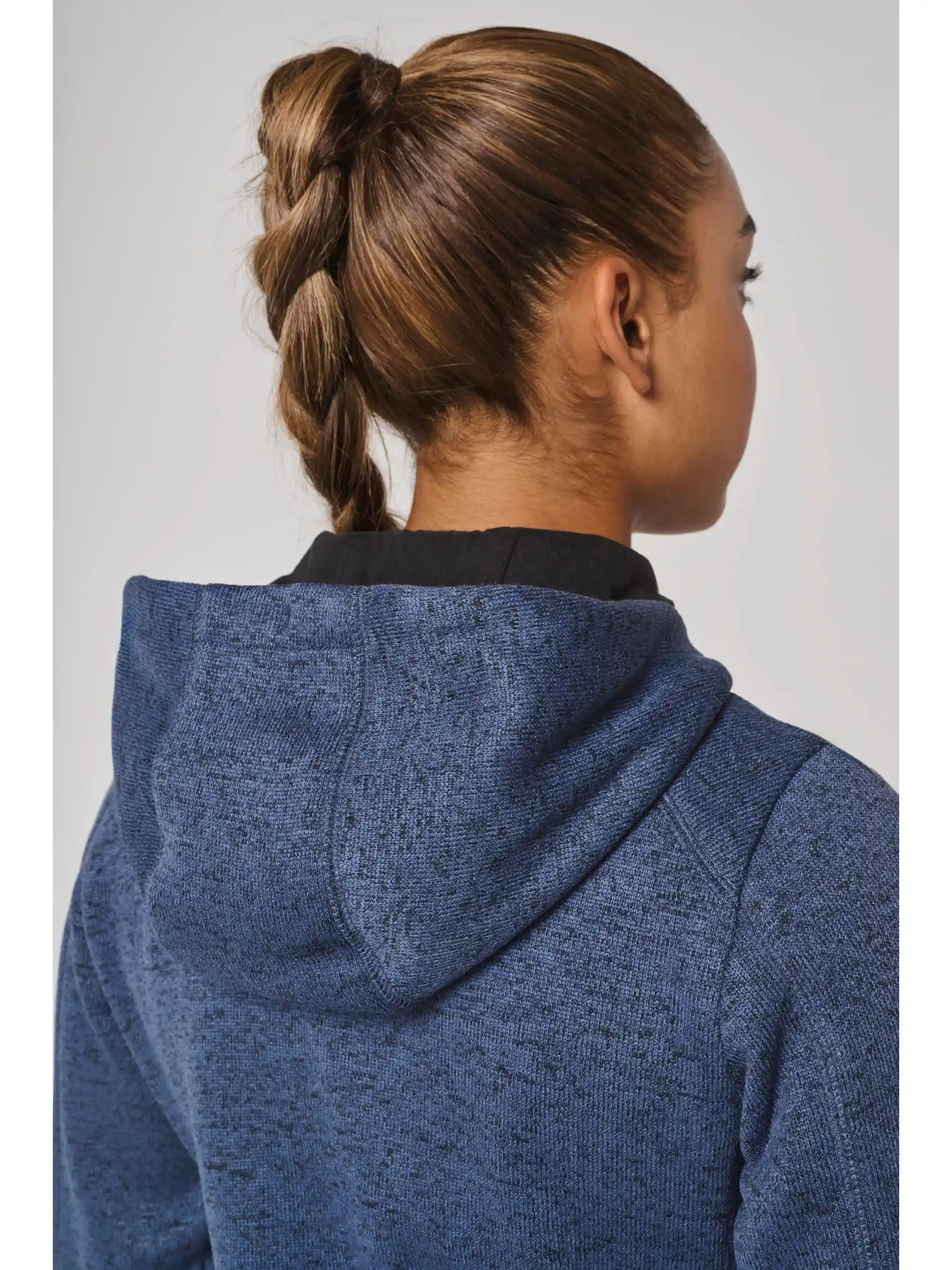 Tricot intérieur gratté 100% polyester. 2 poches devant zippées contrastées et 1 poche poitrine zippée contrastée. Capuche doublure contrastée jersey 100% coton avec cordon de serrage plat contrasté. Bas de manches et de vêtement avec finition biais contrasté élastiqué. Point de recouvrement sur les découpes.