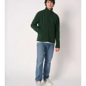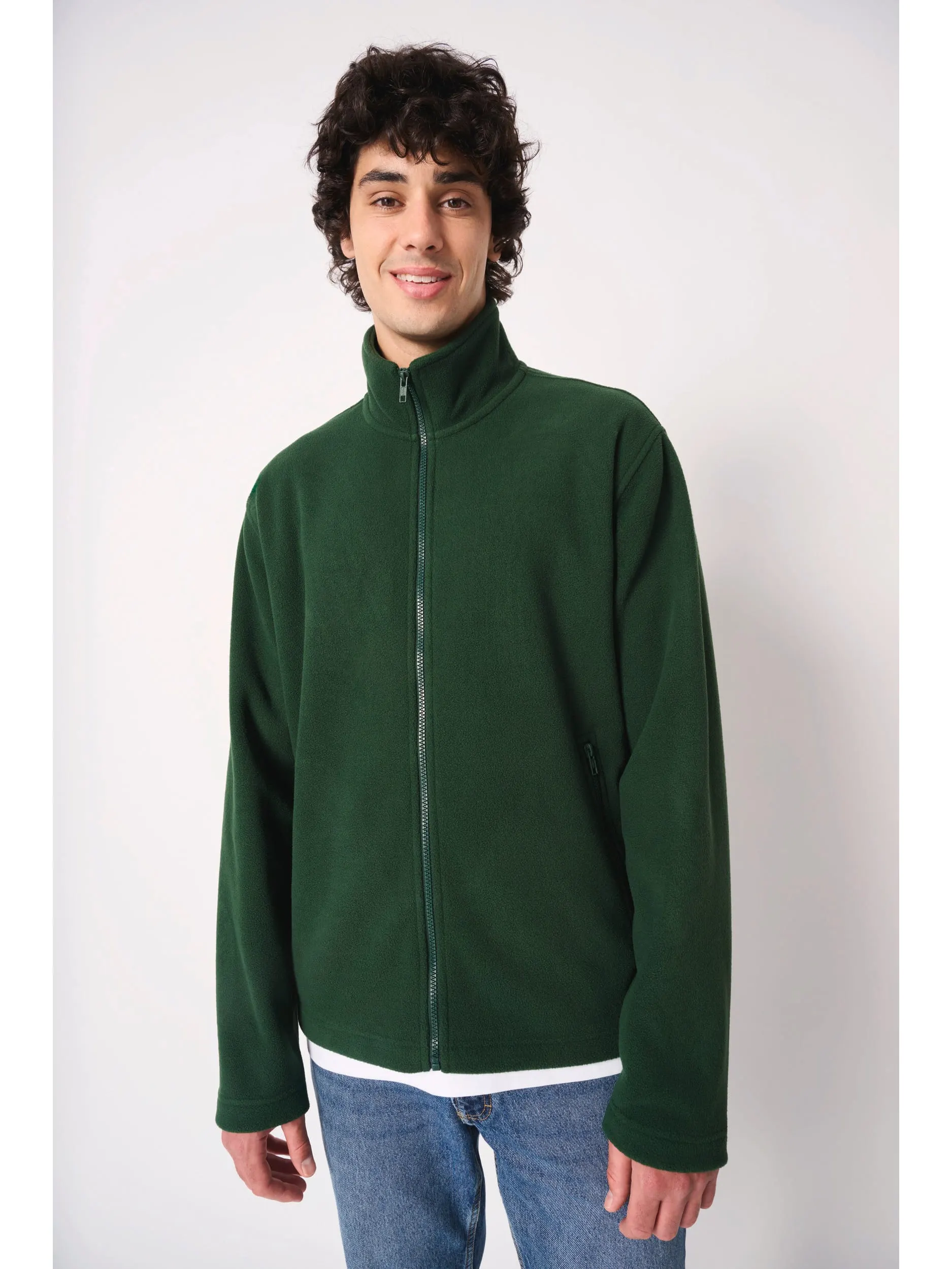 100% polyester. Micropolaire avec traitement anti boulochage. Coupe droite. Col montant. Deux poches côtés doublées en jersey, avec zips en plastique ton sur ton. Fermeture zippée en plastique ton sur ton. Bande de propreté intérieure col ton sur ton. Ourlets bas de manches et bas de vêtement finition double aiguilles. Etiquette de marque détachable.