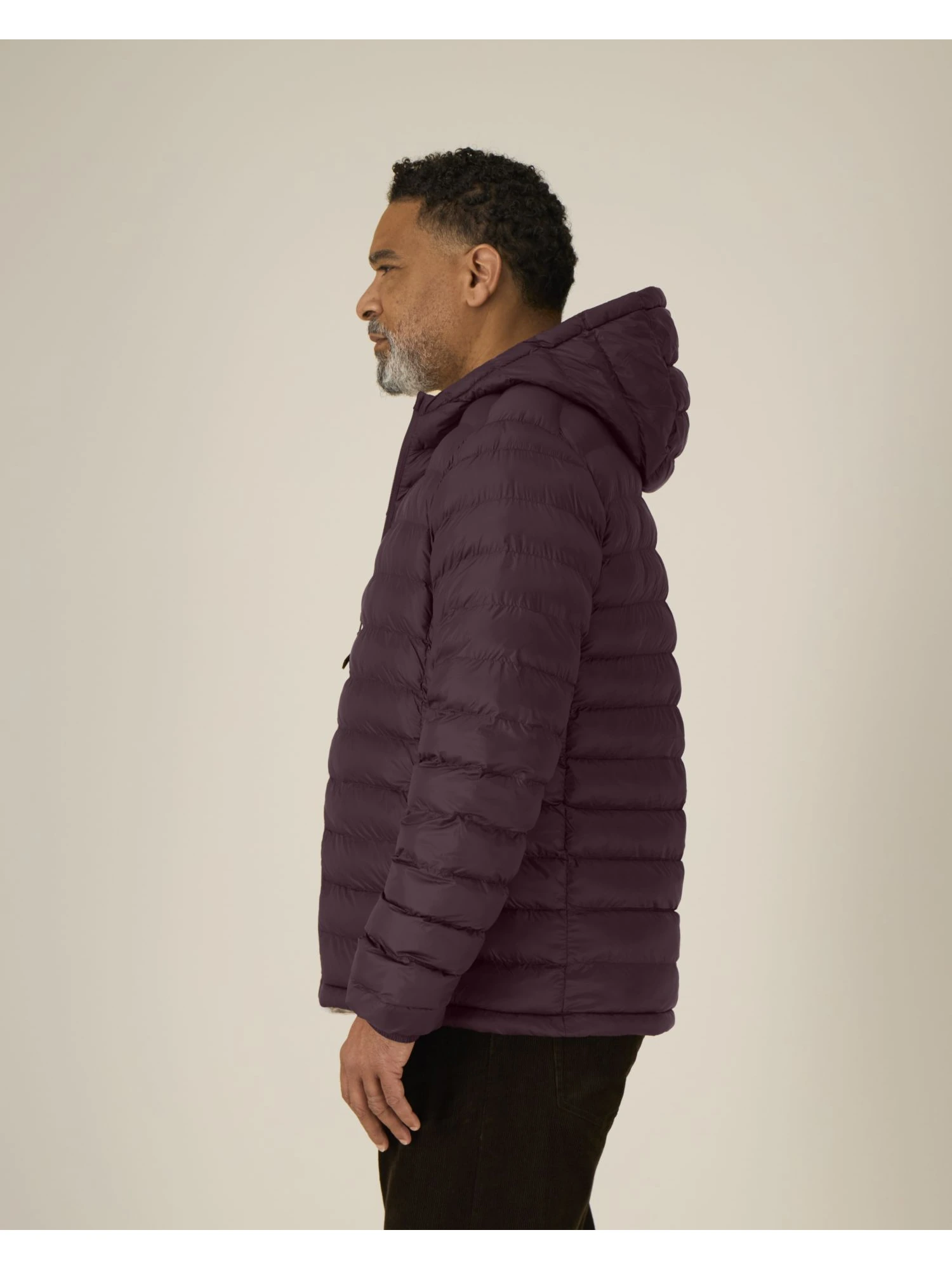 Col montant avec capuche attenante Zip nylon inversé milieu devant Manches montées Poches passepoilées zippées avec tirettes en gros-grain Poignets élastiqués dans la matière principale Panneaux latéraux pour un meilleur ajustement Ouverture de la capuche et bas de corps ajustables avec cordon élastique et stoppeurs en plastique Entièrement matelassé Toutes les coutures intérieures finies avec un biais recyclé