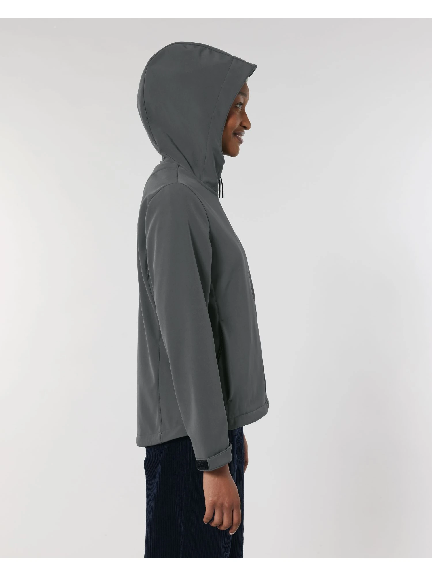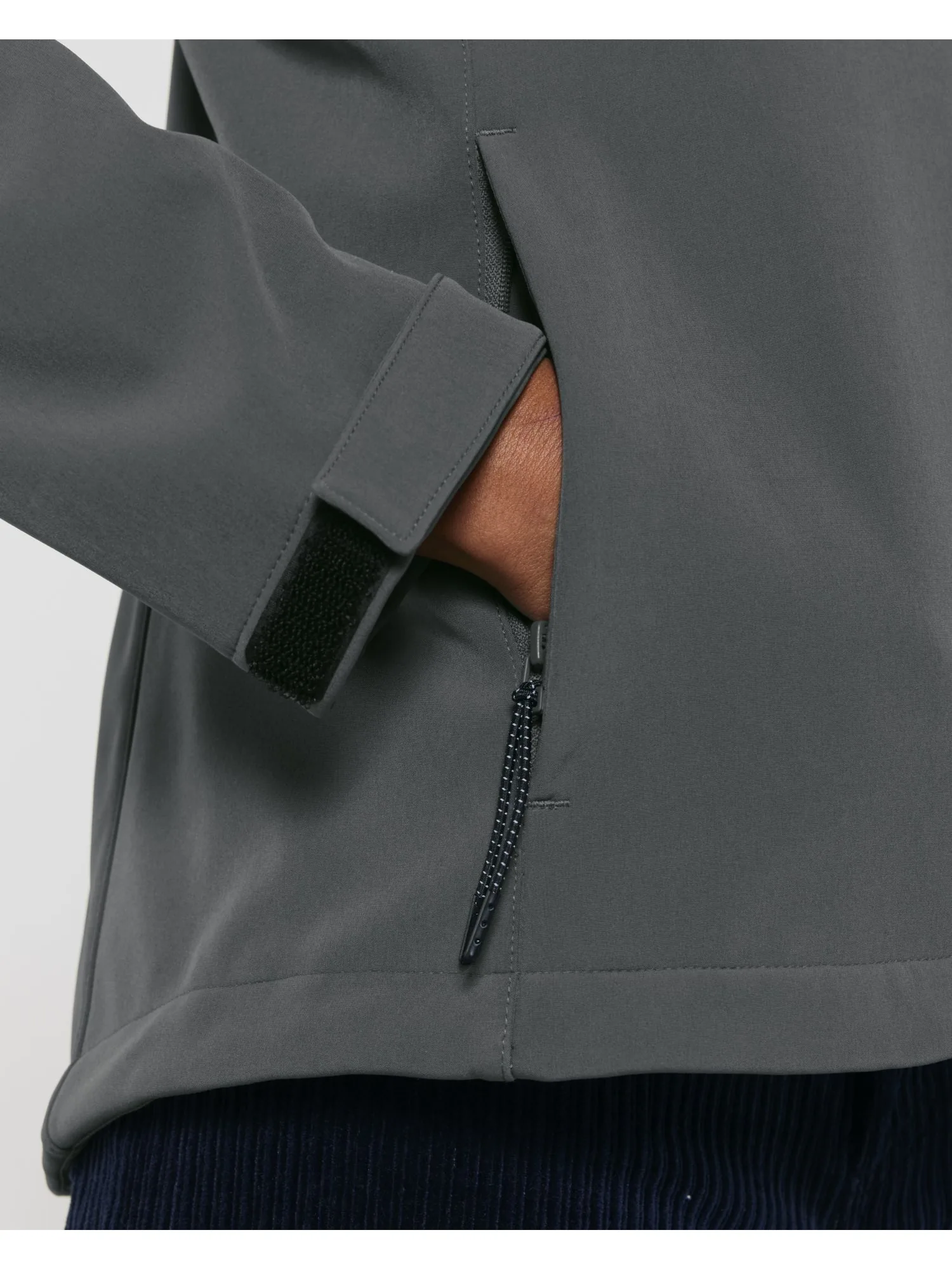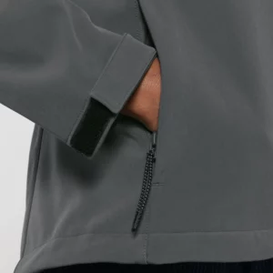 Col montant avec capuche à empiècements Zip nylon inversé milieu devant Manches montées Poches passepoilées zippées avec tirettes élastiques réfléchissantes Ouverture de la capuche et bas de corps ajustables avec cordon élastique et stoppeurs en plastique Bas de manches ajustable par velcro Toutes les coutures intérieures finies avec un biais recyclé Doublure en polaire anti-boulochage Tissu 3 couches entièrement contrecollé avec membrane TPU recyclée Tissu softshell bi-extensible pour un meilleur ajustement et une meilleure tenue Déperlant jusqu’à 10 000 mm avec Bionic Finish® Eco Respirant jusqu’à 3 000 g/m²/24h Coupe-vent