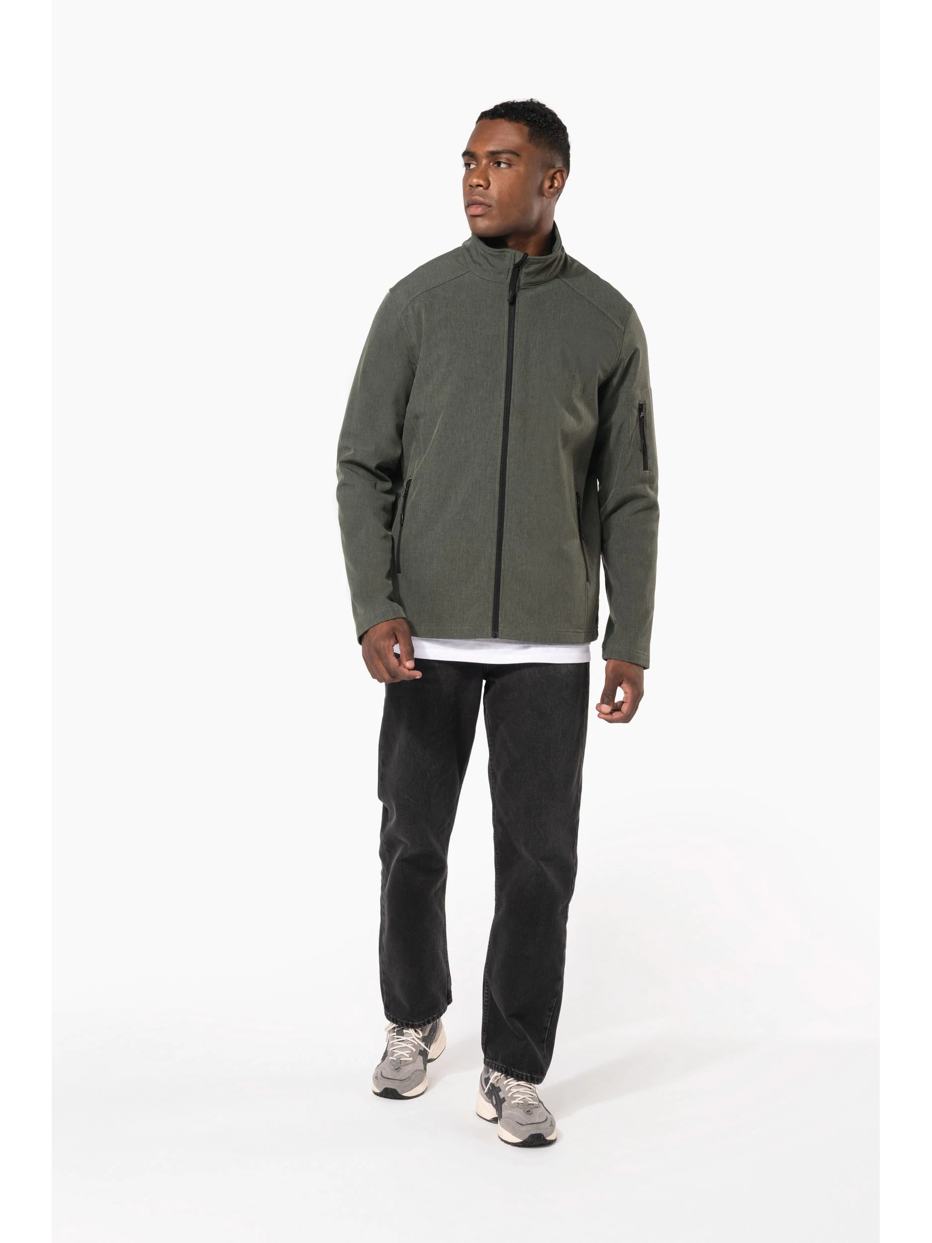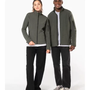 95% polyester / 5% élasthanne. Tissu contrecollé 3 couches respirant 3000 g/m² /24 h et imperméable 8000 mm. Extérieur : 95% polyester / 5% élasthanne. Intermédiaire : membrane respirante. Couche intérieure : micropolaire. Fermeture zippée. 2 poches zippées sur le devant et une poche zippée sur manche gauche.